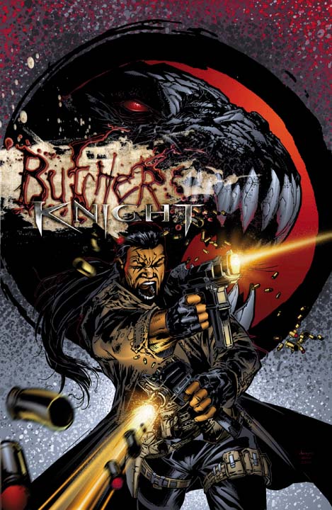 In the Butcher Knight series, Lancelot has returned to life in the present as Luther Washington, a reclusive painter who is still half-gargoyle, and who must consume the blood of demons to survive. Merlin still lives as well, as Barnabus London, head of a modern business empire. Luther finds himself allied with Daria, a seductive and ruthless witch seeking Merlin's power for her own purposes. The series concluded (somewhat abruptly) with the fourth issue.