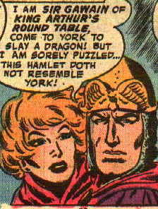 In this 12-page story, a young knight named Dorian attempts to rescue a young lady-in-waiting named Hilda from the unwanted amorous attentions of a much older magician, Merlin, but only succeeds when he invokes the aid of magical pterosaurs from the prehistoric past. (Charlton publication information from the Grand Comics Database.)